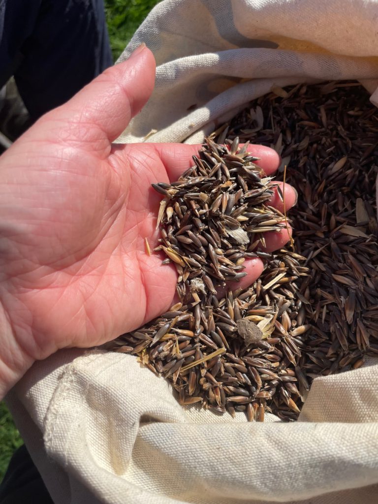 Heuwyd gwenith treftadaeth ‘Barfog Ebrill’ yn y gwanwyn – gwnaeth rhai ni egino’n gwael iawn ond roedd y gerddi eraill yn Llandysul a Chastellnewydd Emlyn yn llawer mwy llwyddiannus. Cafodd y gwenith a gynaeafwyd ei ddyrnu yn Ffair Hen Bethau Talgarreg.