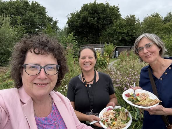 Yn ystod un o’r sesiynau daeth Elin Jones AS a’i chydweithiwr Anna Nichol (ymgeisydd Plaid Cymru dros Aberteifi yn etholiad Senedd y flwyddyn nesaf) i weld y prosiect. Roedd Ein Cegin wedi eu gwahodd ac roedden ni’n ffodus iawn eu bod nhw wedi dewis dod i sesiwn yn ein Gardd Gymunedol yn hytrach nag un o’r lleill – rhoddodd hyn y cyfle i ni arddangos Naturewise, yr hyn rydyn ni’n ei wneud a ble rydyn ni.